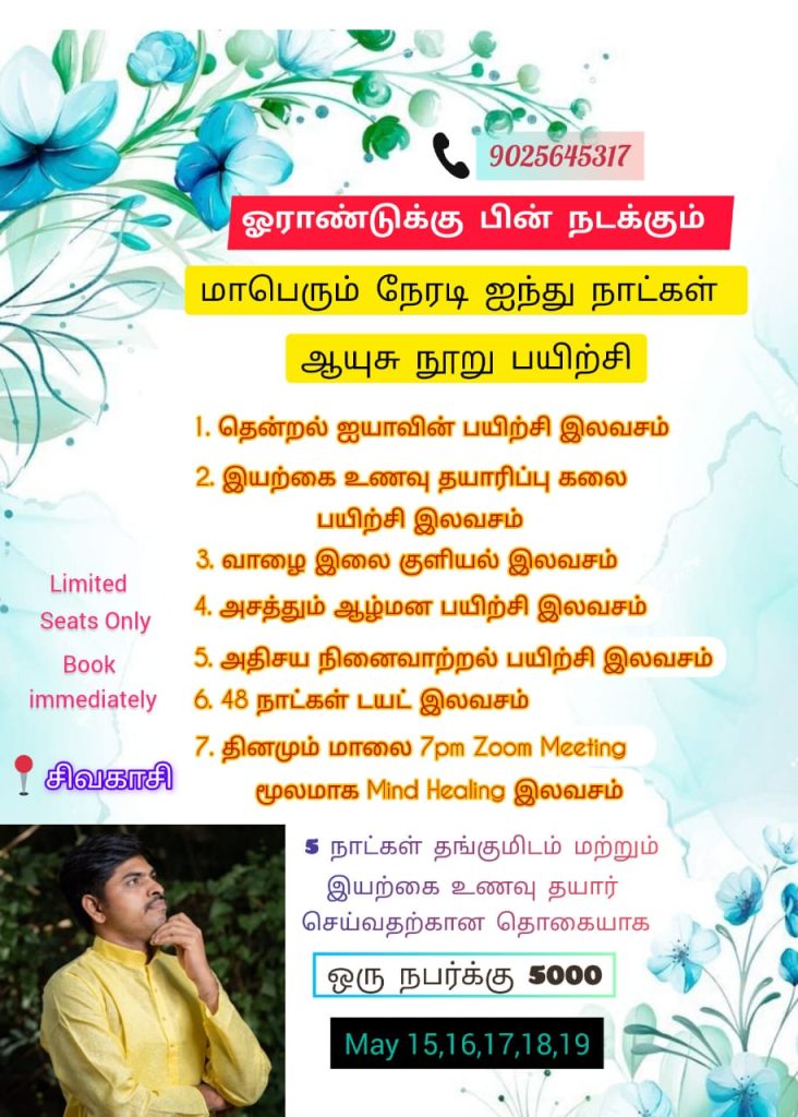 இப்படியான ஒரு இயற்கையான சூழலில் இயற்கையான முறையில் உங்களை நீங்களே குணப்படுத்திக் கொள்ள வாருங்கள் சிவகாசிக்கு