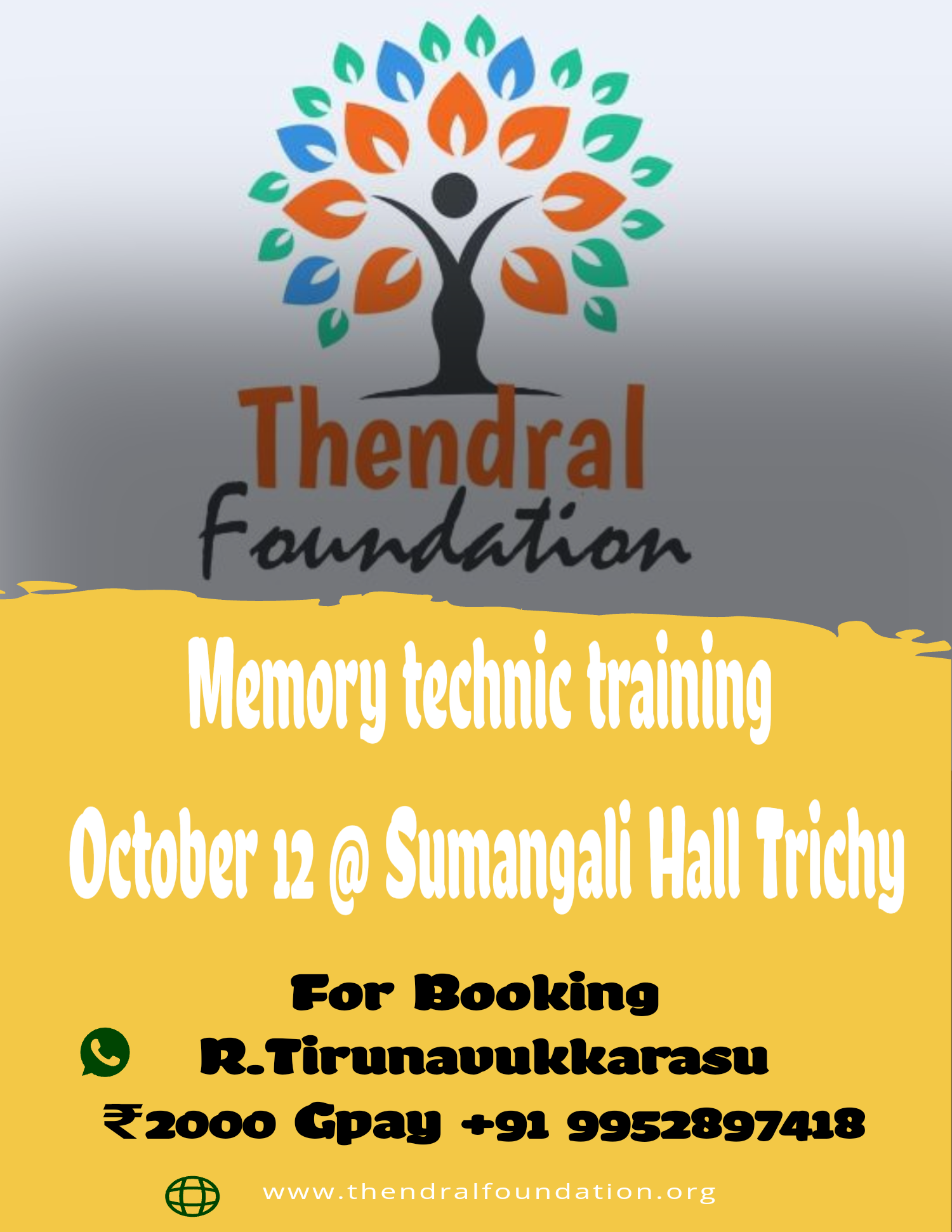 விஜயதசமியை முன்னிட்டு மாணவர்களுக்கான *மாபெரும் நினைவாற்றல் பயிற்சி முகாம்* OCTOBER 12 SATURDAY @ TRICHY நிகழ்ச்சியில் யார் பங்கேற்கலாம்:-